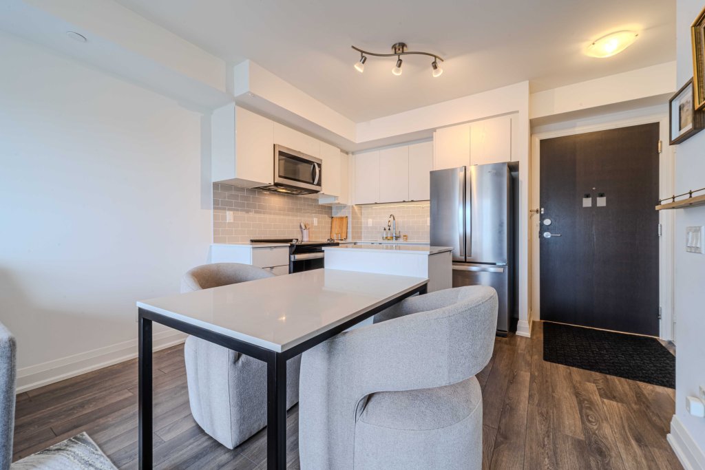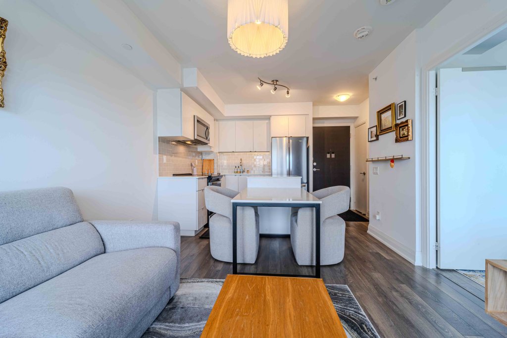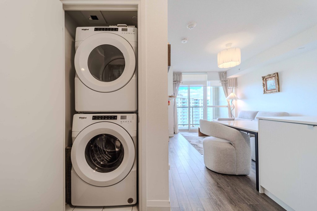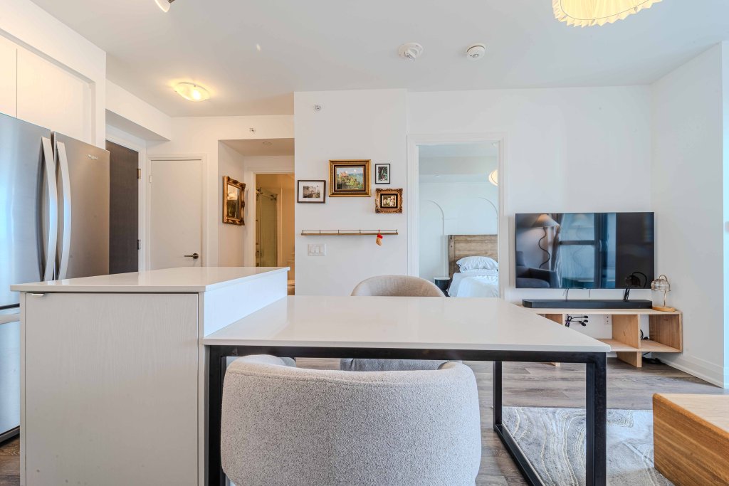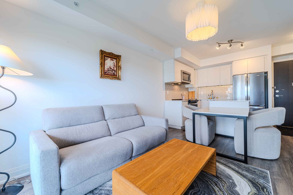Sophisticated city living in this beautiful 1-bedroom, 1-bathroom condo! This bright unit features an open-concept layout with floor-to-ceiling windows for abundant natural light. The modern kitchen is equipped with sleek quartz countertops and premium stainless steel appliances, blending style with everyday functionality. Relax in your bathroom with the glass-enclosed shower/tub combo. Step out onto your private balcony to enjoy the fresh morning air! Just steps from the shops, restaurants, public transit, and parks. Option to add EV charging station to parking spot for ultimate convenience!