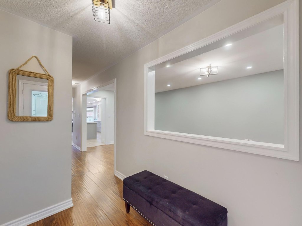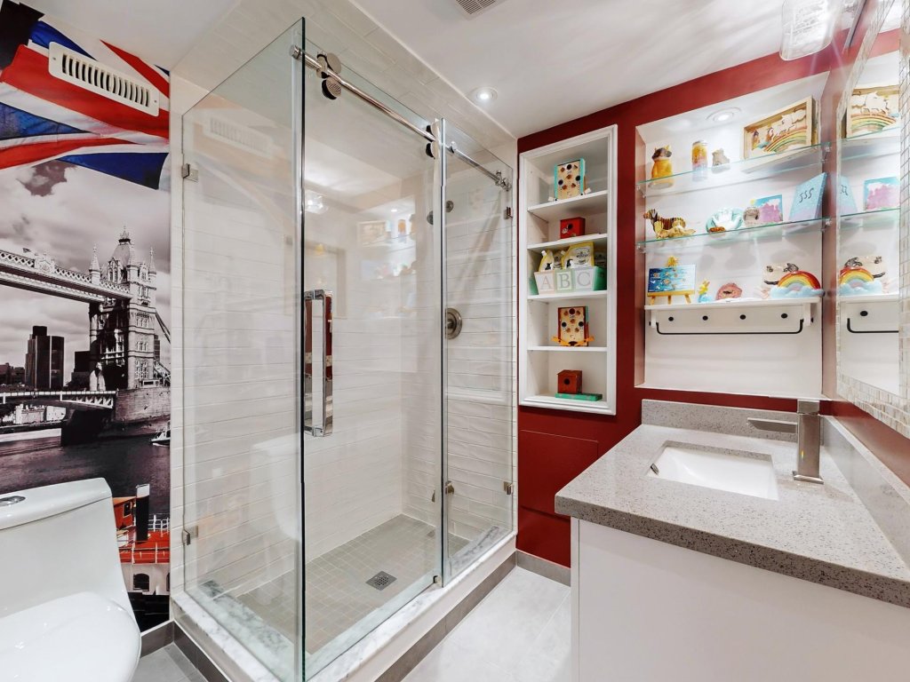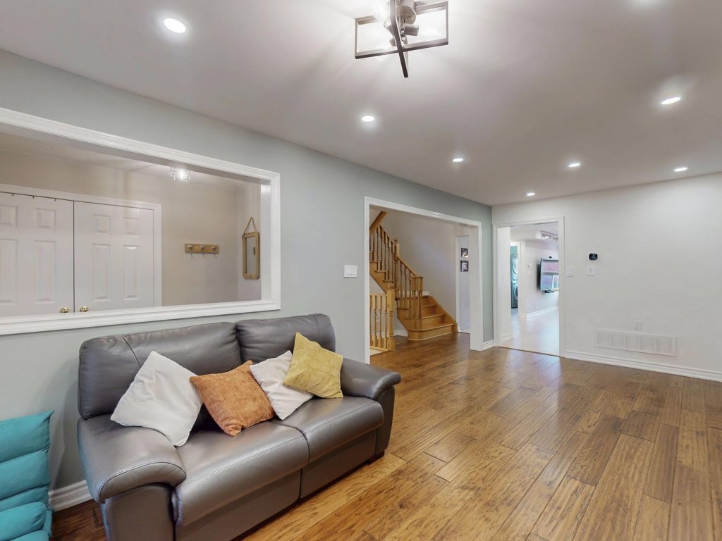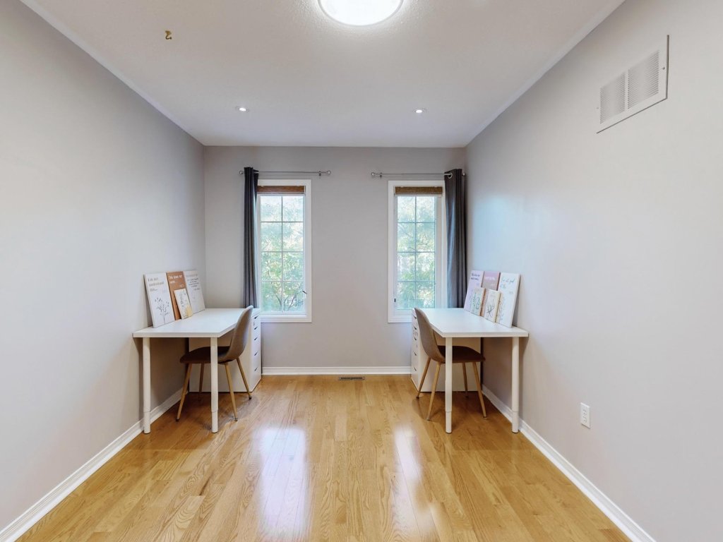 Stylish and smartly upgraded end-unit townhome in prime Markham near Hwy 7 & McCowan. Steps to Main Street Unionville, top schools, parks, restaurants, and shops. Features engineered hardwood and herringbone accent tile, quartz kitchen with full-height pantry, built-in banquette, LED lighting, and smart switches. Primary ensuite with frameless glass shower, rainfall head, and double vanity. Finished basement includes a cozy reading nook and home theatre with built-in speakers and motorized projector screen. Front yard with auto irrigation and custom stone steps; backyard fully interlocked with dual fence access. Detached double garage with concrete driveway. A rare blend of modern comfort, function, and location! Download a copy of the Feature Highlight!